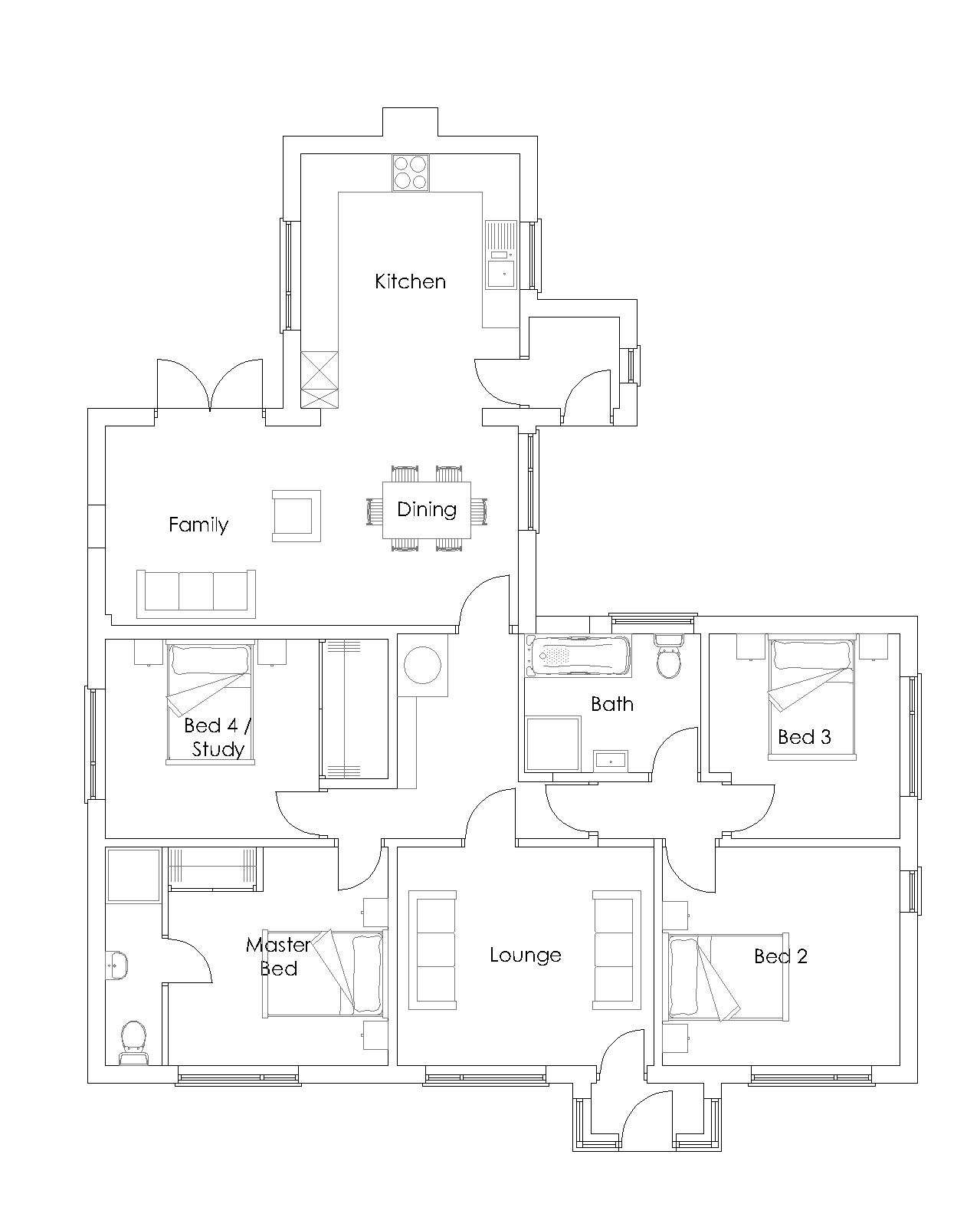 The stylish, L-shaped Brampton bungalow, with its crisp white rendering, occupies a generous plot adjacent to the park. This comfortable and beautifully-designed home, deal for a family or for those who’d simply like more space, comprises: